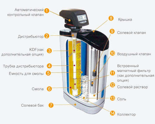 Кабинетный умягчитель представляет собой компактную установку которая удаляет из воды повышенные соли жесткости(соли магния и кальция), которые в свою очередь образуют накипь и ведут к поломкам бытовой техники, так же железо <1мг./л.. Установка позволяет решать задачи по умягчению сверхжесткой воды. Удобный дизайн и практичное исполнение позволяет использовать систему для умягчения воды в квартире, офисе, загородном доме. При обслуживании системы от потребителя требуется только досыпать соль NaCl, в бок для соли.